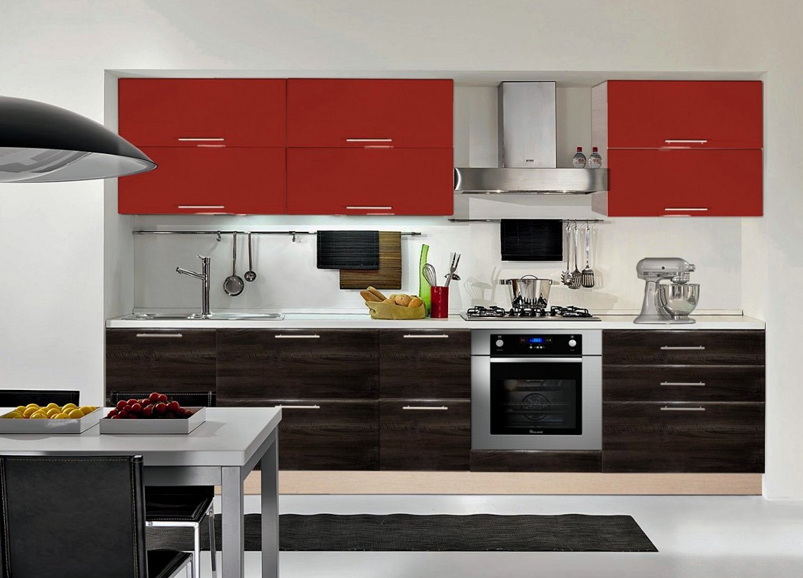 - Неординарные личности часто выбирают красную цветовую гамму. Насыщенный красный — цвет деятеля. На такой кухне хочется творить и создавать новые кулинарные шедевры и экспериментировать. Выбирайте ярко-красный цвет только в том случае, если кухня большая и просторная, иначе она будет казаться меньше, чем есть на самом деле. Если площадь мала, но вы мечтаете о кухне в красных оттенках? Используйте более приглушенные, светлые оттенки красного, это визуально расширит пространство.